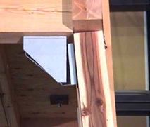 三角形の鋼板と鋼板の間に粘弾性体を挟み込み、柱・梁仕口部に取付け、粘弾性体をせん断変形させることにより、地震荷重や風荷重のエネルギーを吸収して木造建物の変形を抑制します。