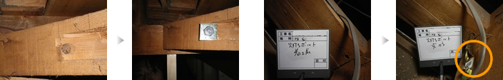 こちらの建物の建設当時は、オイルショックの頃で金物や木材が不足した時期でした。ですので、穴の加工はありますがボルトが入っていません(しかもその箇所が多い)。建設当時の設計では強度が足りない状態ですので、まずそこから改善する必要があります。ほとんどが天井裏等に入れば工事可能ですので、大規模な解体などは必要なく低コストで改善できます。